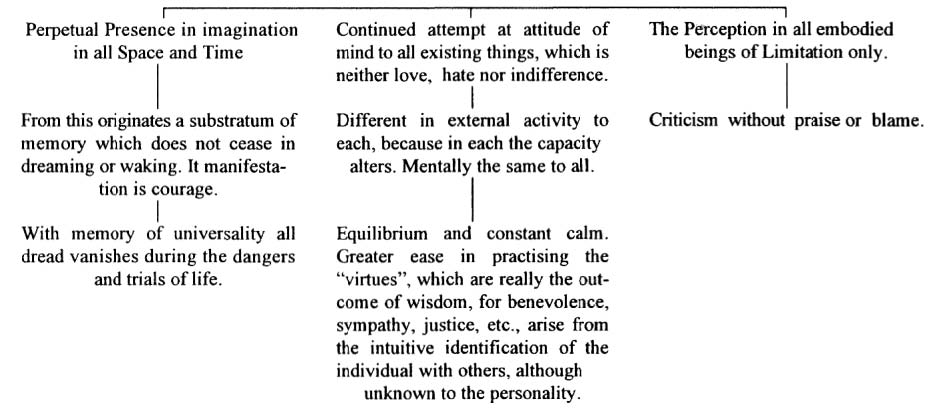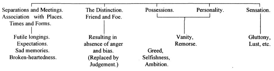 Note. These deprivations are produced by the perpetual imagination - without self-delusion* - of “I am without ”, the recognition of their being the source of bondage, ignorance and strife. “Deprivation ” is completed by the meditation: “I am without attributes ”.