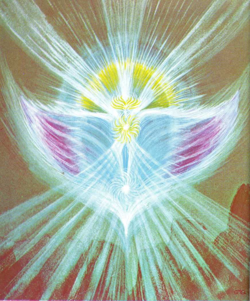 mind to mine there began to flow a stream of ideas concerning the life, the force and the consciousness of the universe and their self-expression as angels and as men. This description is not strictly accurate, however, because during such communication, the sense of duality was reduced to a minimum. Rather did the two centres of consciousness, those of the angel and myself, become almost coexistent, temporarily forming one “being “within which the stream of ideas arose. This, I believe, is essentially true of all interchanges which occur above the level of the formal mind, and especially at those of spiritual Wisdom and spiritual Will. In the latter, duality virtually disappears and oneness, uttermost interior unity, alone remains. 5
