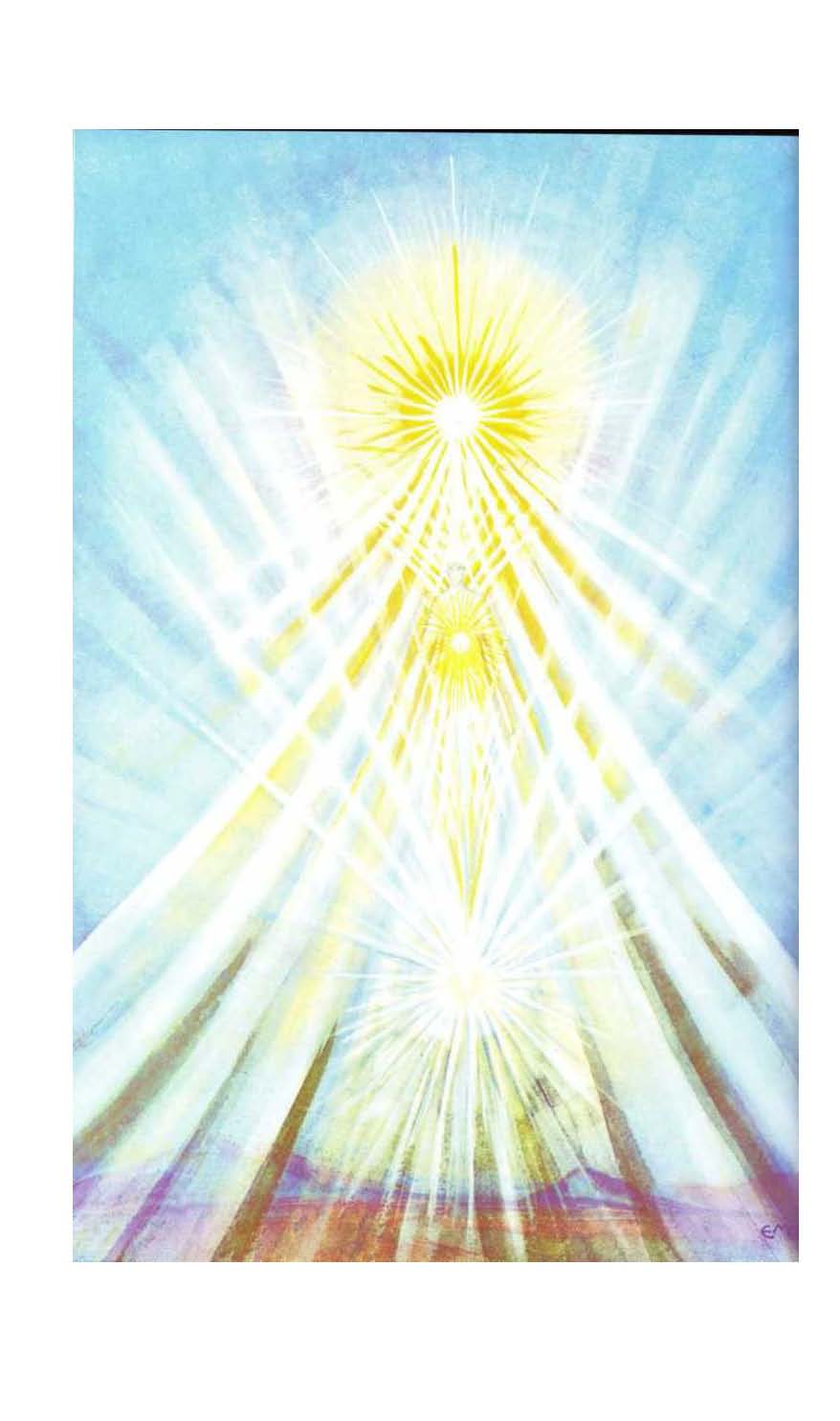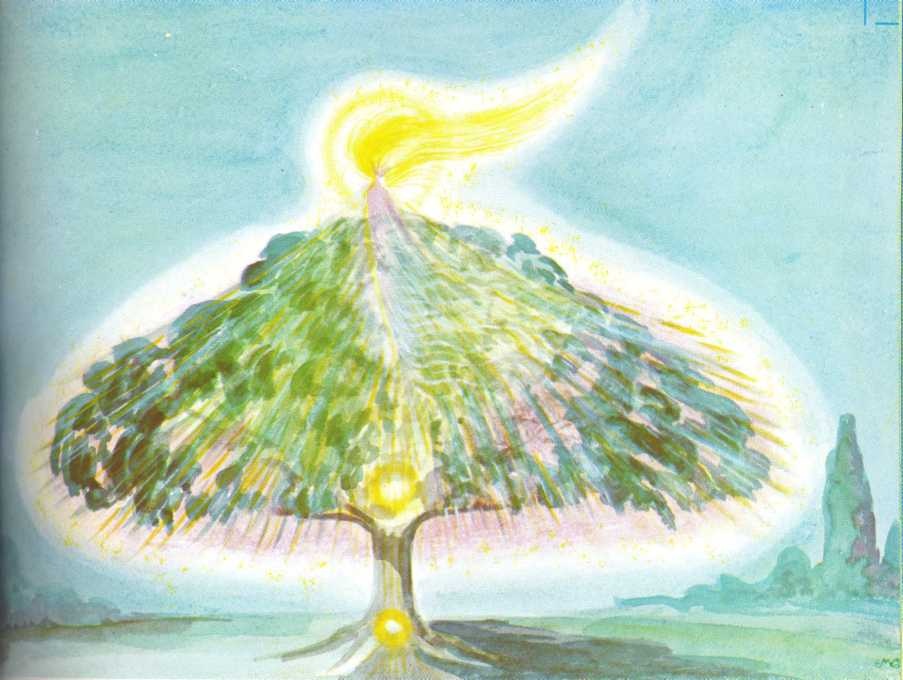 music of the Creative “Word “passes on to the lower worlds, where lesser Hosts formatively echo and re-echo it, thereby building all Nature’s varied forms. Since the Great Artist of the Universe perpetually creates, the Creative Symphony is ever being composed and ever performed. Angels and men live amidst celestial harmonies, the everlasting music of the spheres.
