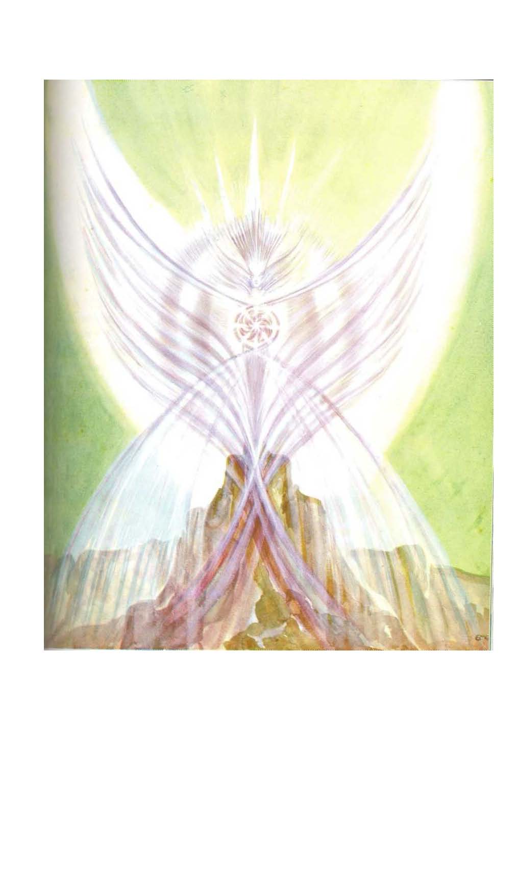 Daily entering that realm of light, I found that the great ocean of the life, the force and the soul of the universe had its myriad denizens. These are the Spiritual Selves of men and Super-men and the vast company of the Angelic Hosts, of which the Being who “addressed “me was a member. He was supernally beautiful, majestic, godlike, and impassive and impersonal to the last degree. As teacher to pupil, he began to tell of—and to enable me, with gradually increasing clarity, to perceive—the Angelic Hosts, their Orders and degrees. He told of their communion with men, as in ancient Greece, Egypt and Eastern lands, their place in Nature as Ministers of the Most High and of that great dawn of creation when, metaphorically, as the Morning Stars they sang together and as the Sons of God they shouted for joy. He spoke of the creative process as the composition and performance of a celestial symphony, of the Logos as Divine Musician and of His universe as a manifestation of celestial harmony. He told of the great Gods who assimilate the mighty creative chords in their primordial potency and relay them through all their ranks from the highest spiritual worlds to the realm of everlasting Archetypes, the great sound-forms upon and by which the physical universe is modelled. Therefrom, he said, the