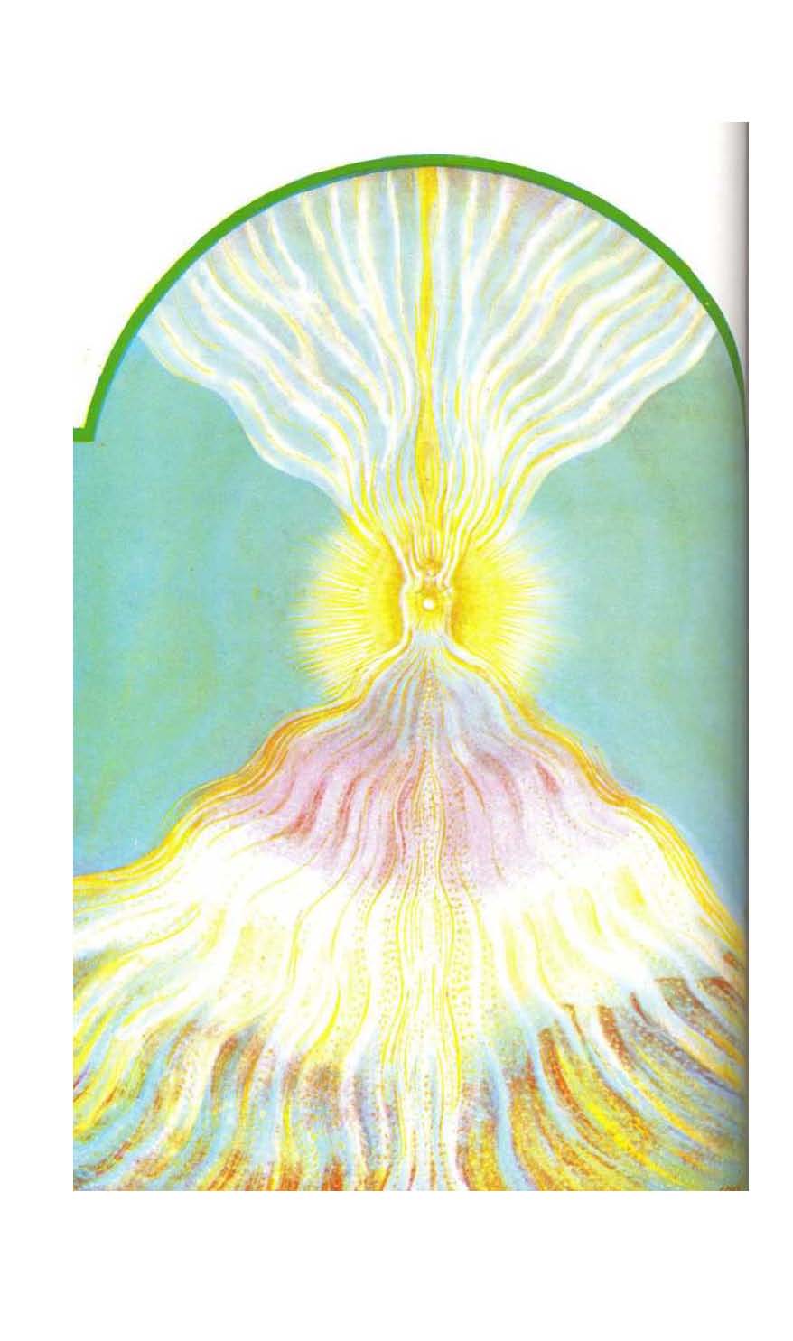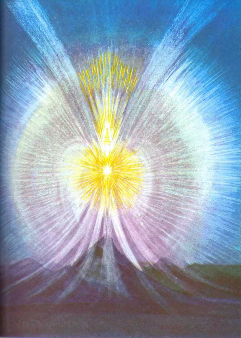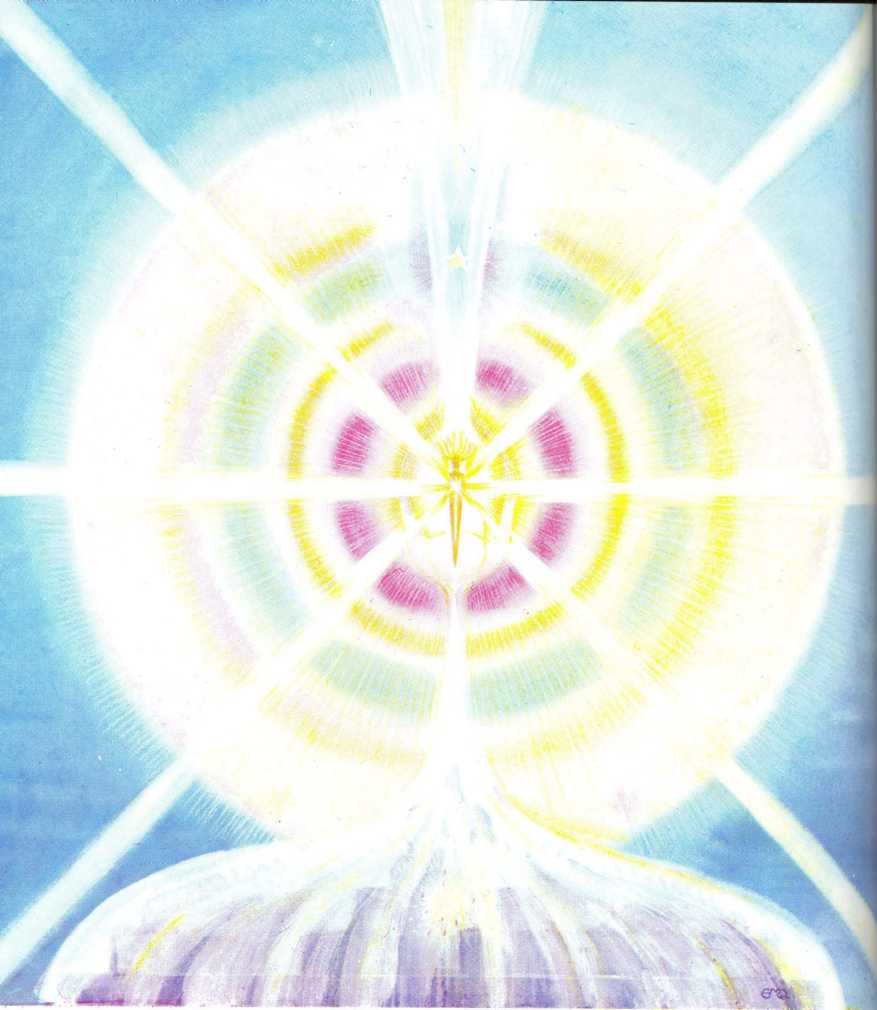 An irresistible process has now been initiated. An omnipotent force has begun to emanate from Absolute Existence. The Three-in-one is propelled, as it were, towards objectivity and finiteness. The Triple God awakes and opens Its single eye. The triangle of light emits rays. These are inevitably seven in number. Sub-rays shine from them, each an intelligent Power, each a creative Logos