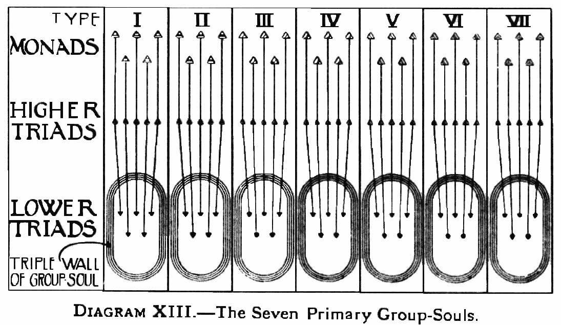 Reverting to the birth or formation of the causal body, we are at once plunged into a consideration of the somewhat intricate subject of Group-Souls, with which we shall have to deal. Tracing the origin of Group-Souls, we are led back, step by step, to the Three Great Outpourings of the Divine Life, from which all forms of manifested life arise. Whilst studying the Three Outpourings, we must necessarily consider to some extent the formation of the material world into which the Outpourings are projected.