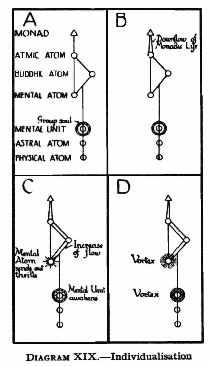 Thus in order that our study of the Causal Body may be a comprehensive one, we must describe, though in brief outline only, the formation of the field of evolution, the flow into that field of the great streams of life, the coming forth of the Monads, the building of the many kingdoms of life, and the plunging of the Monads, with the assistance of the permanent atoms, into the material universe, and the gradual development of the life in the Group Souls until eventually, after aeons of existence, the point of Individualisation is reached, when the causal body for the first time appears.