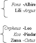 Jason -Canopus Pepin -Telosa Spes -Mira Ulysses -Mars Aries -Bella Spica -Castor