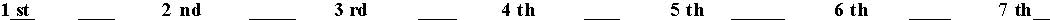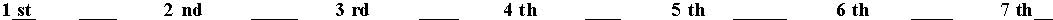 | 1 st | 2 nd | 3 rd | 4 th | 5 th | 6 th | 7 th |