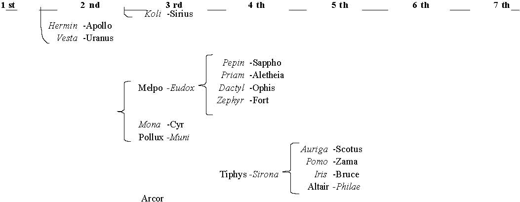 Arcor -Gimel Albireo -Pearl Pepin -Sextans Aldeb -Herakles