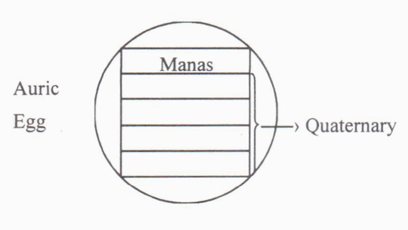 In the second:-The lower quarternary is regarded as mere matter, objective illusion; and there remain Manas and the A.E., the higher principles being reflected in the A.E.